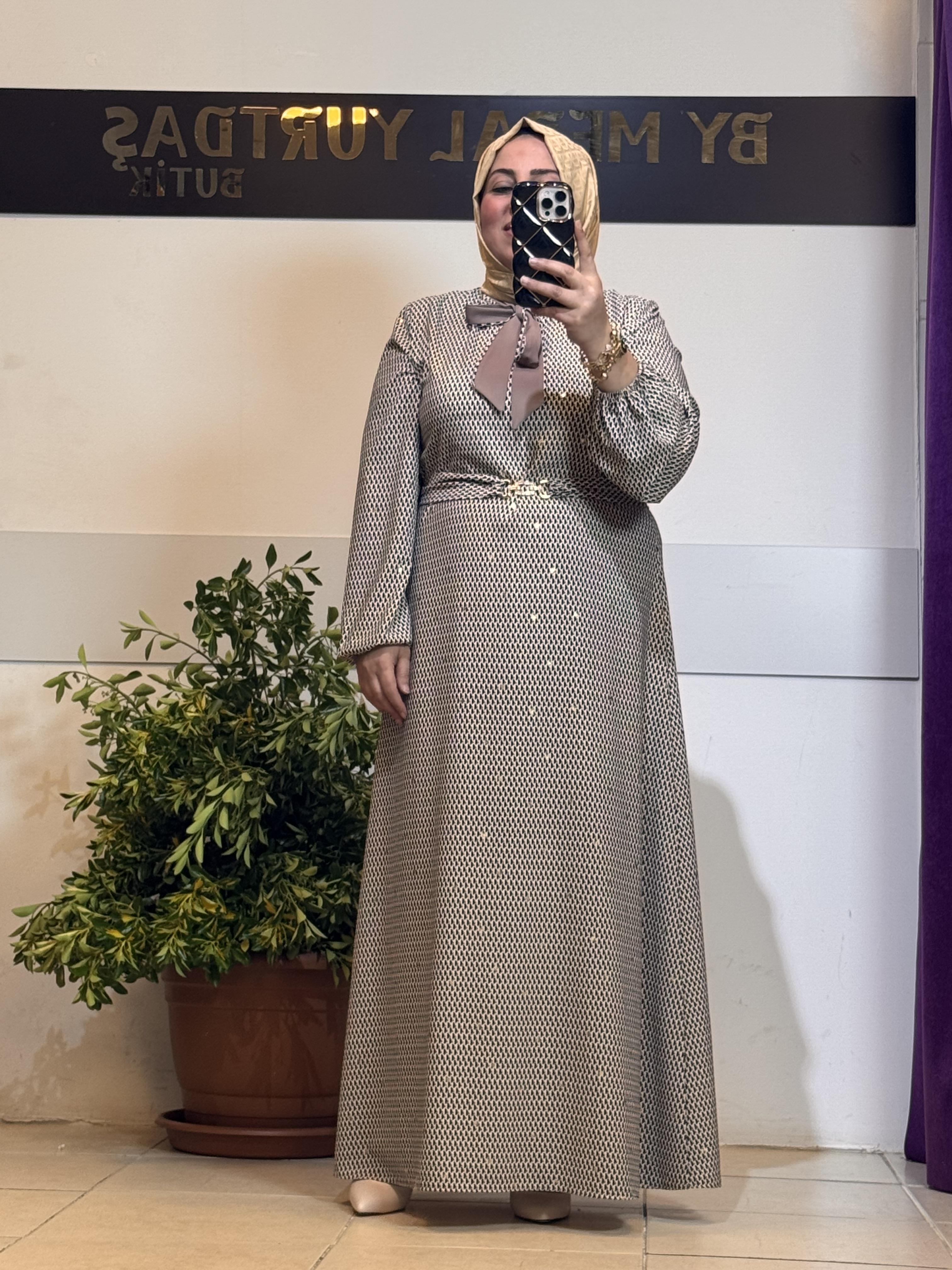 Özel günlerinizde göz kamaştırın 40 42 44 46 bedenleri mevcuttur kalıplar tam kalıptır kendi bedeninizi tercih edin seyyar kemerli iç astarlı ışıltılı elbise